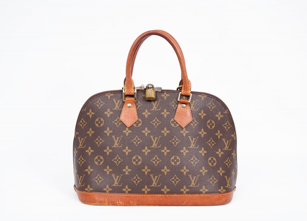 • Louis Vuitton - Paris - modelo " Alma " - série CL0762 em canvas monogramado, com alças e base em couro, ferragens douradas, fecho com ziper duplo acompanha cadeado, bolso interno - med. 25x32x16 cm (apresenta desgastes de uso no couro e nos metais, falta a chave do cadeado