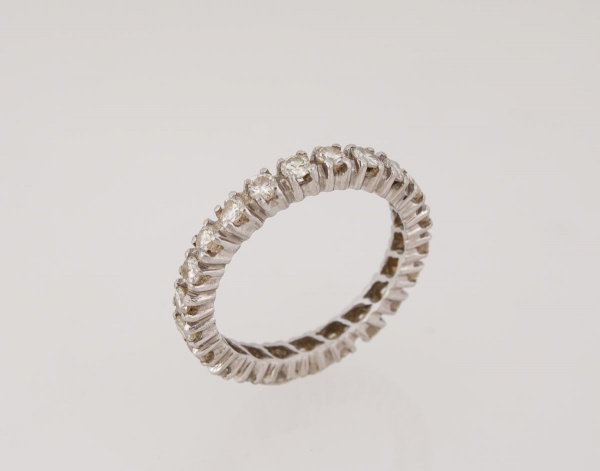 • Antiga e elegante aliança em platina cravejada com vinte e dois brilhantes de aproximadamente  0,3 ct - aro 15 - peso aproximado - 3,6gr - ESTE LOTE SOMENTE PODERÁ SER RETIRADO COM AGENDAMENTO PRÉVIO DE 48H DE ANTECEDÊNCIA, MEDIANTE CONFIRMAÇÃO DO PAGAMENTO, POIS NÃO ENCONTRAM-SE NO LOCAL DE REALIZAÇÃO DO LEILÃO