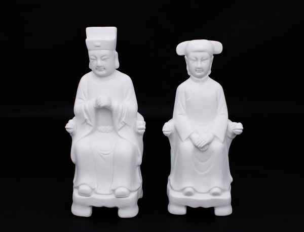 • Par de esculturas orientais em biscuit branco representando " Imperador e Imperatriz " - med. 30x12x11 cm e 28x11x10 cm