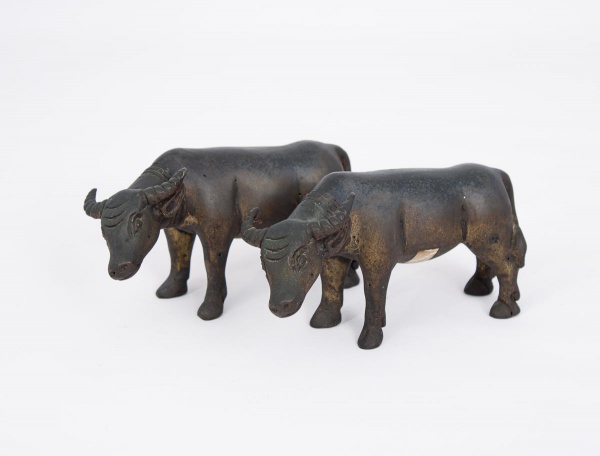 • Esculturas decorativas da Indonésia em petit bronze patinadas representando "Búfalos" med. 8x14x6 cm.