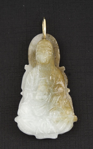 • Antigo pingente oriental esculpido em jade com argola em ouro 18 K representando " Buda sentado sobre flor de lótus " - med. 4x2 cm - ESTE LOTE SOMENTE PODERÁ SER RETIRADO COM AGENDAMENTO PRÉVIO DE 48H DE ANTECEDÊNCIA, MEDIANTE CONFIRMAÇÃO DO PAGAMENTO, POIS NÃO ENCONTRAM-SE NO LOCAL DE REALIZAÇÃO DO LEILÃO