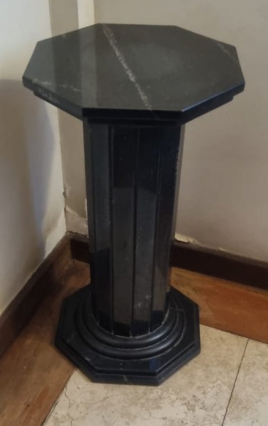 • Elegante coluna em granito preto com tampo. coluna e base oitavada med. 75x39x39 cm. Este lote não encontra-se no local do leilão, retirada com agendamento prévio em um condomínio na Barra. Peça extremamente pesada, precisa de transportadora especializada para retirada.