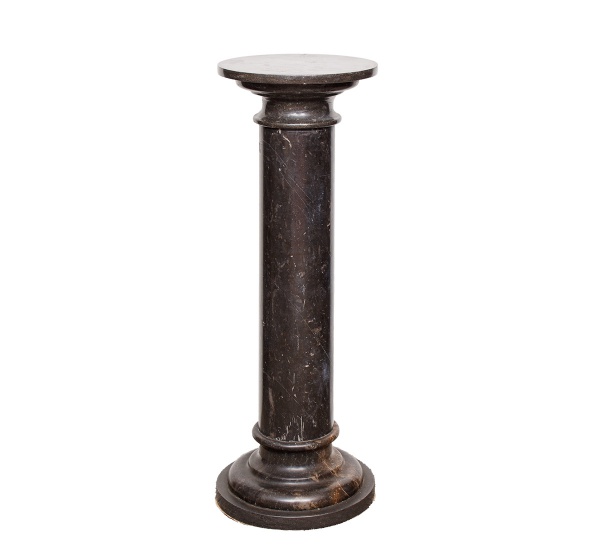 • Coluna em mármore preto rajado, tampo e base redondo med. 80x30 cm de diâmetro. Peça extremamente pesada.