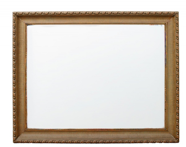 • Espelho retangular em cristal bisotado, moldura com pátina no tom verde e dourado med. 112x142 cm (moldura com pequenos desgastes). Este lote não pode ser enviado pelos Correios.