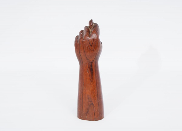 • Antiga escultura em Jacarandá entelhado representando "figa". A figa é um amuleto tradicionalmente usado como símbolo de proteção e sorte med. 25x7x6 cm.