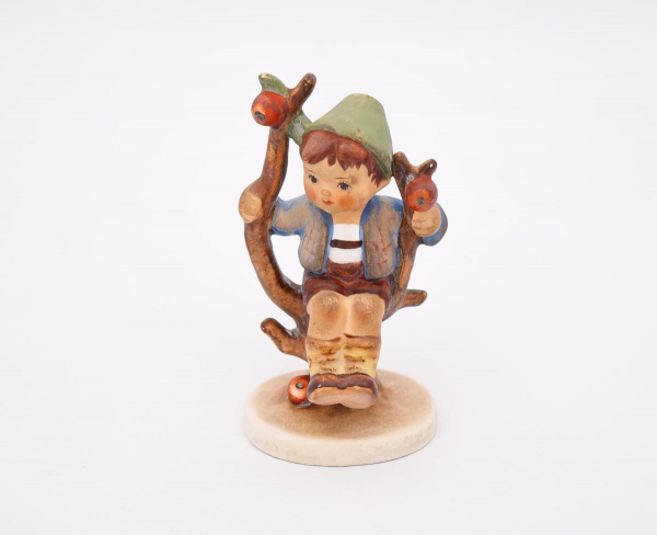• Colecionismo - Hummel - Goebel - Germany - Antiga escultura em porcelana alemã policromada representando " menino sentado em galhos com frutas " - assinado na base - As esculturas Hummel são peças colecionáveis criadas pela artista Maria Innocentia Hummel (1909 - 1946) - med. 10x5x4,5 cm