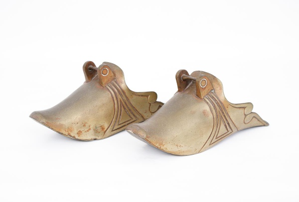 • Antigo par de estribos ditos " sapatas "  em bronze - med. 12x29x10 cm - podendo ser usadas como floreiras de parede (com amassados)