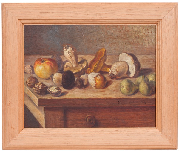 • Multedo Oldoino - Natureza Morta - mesa com frutas - o.s.m - assinado e datado c.i.d - 1934 - med. 33x42 cm e com moldura - med. 48x57 cm
